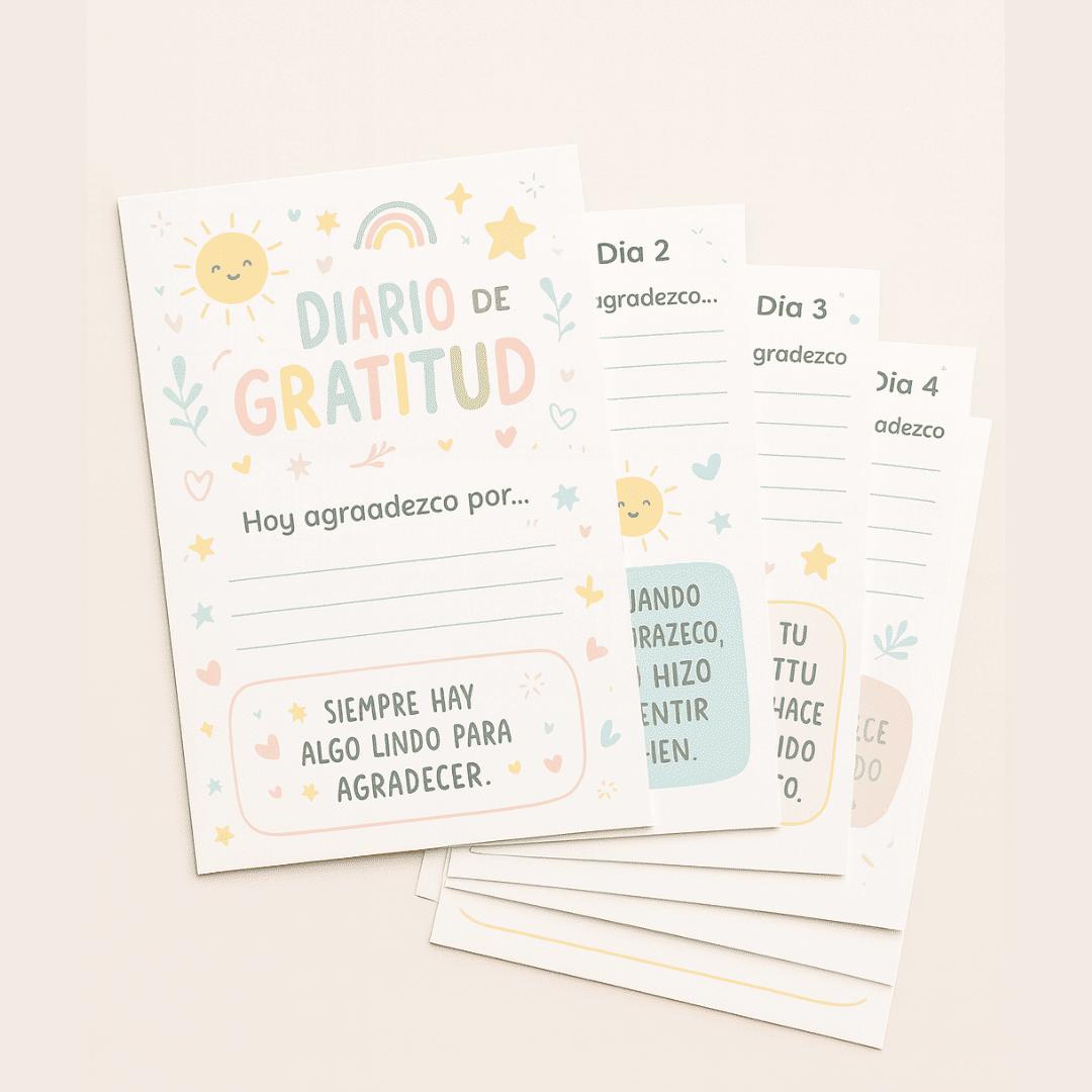 Lo mejor: podés imprimirlo y completar una hoja por día durante una semana. Ideal para antes de dormir o compartir en familia como ritual positivo.